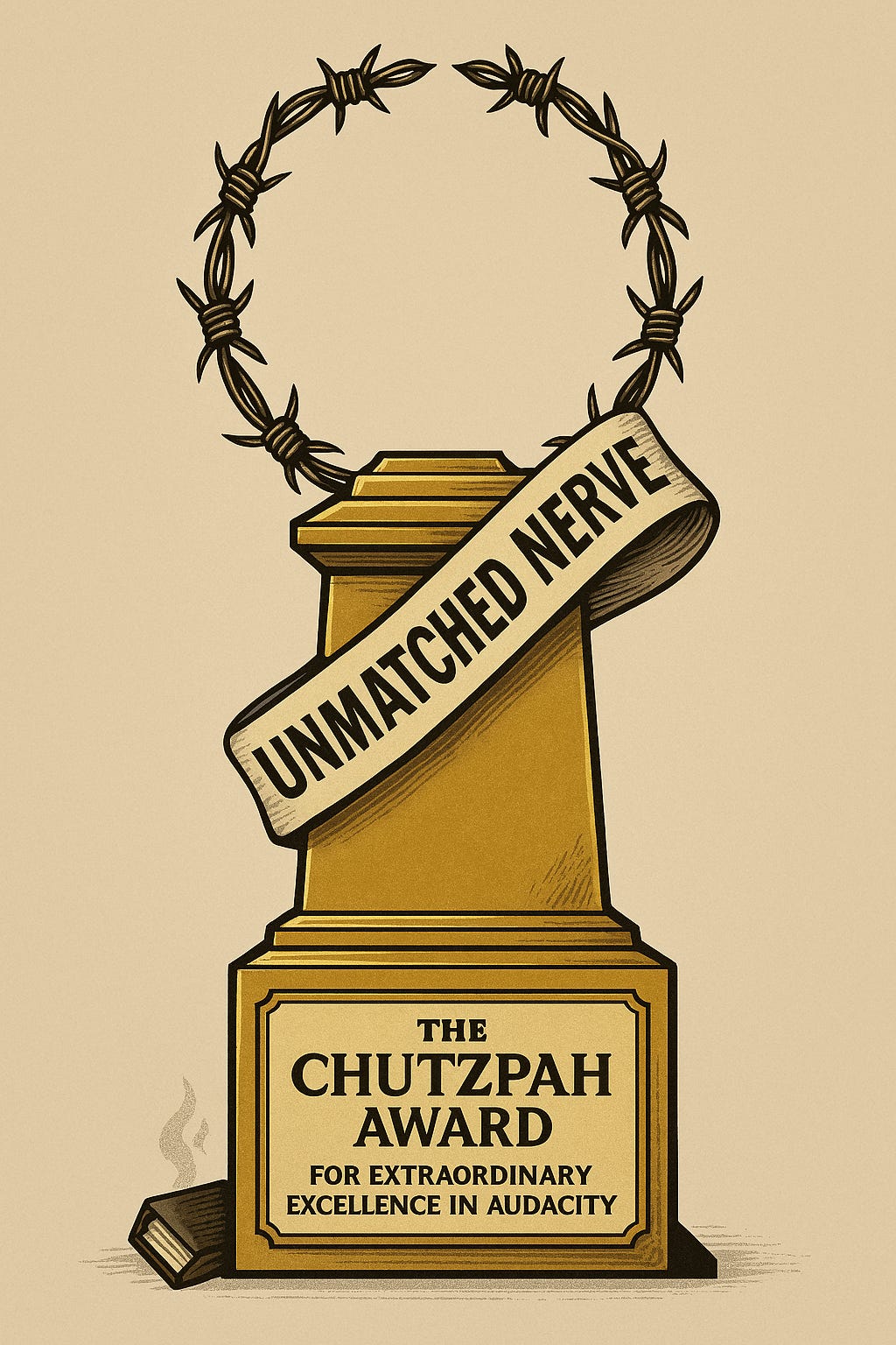 My Weekend Chutzpah Award goes to Israeli Prime Minister Benjamin Netanyahu for this great piece of irony on the protests inside Iran.